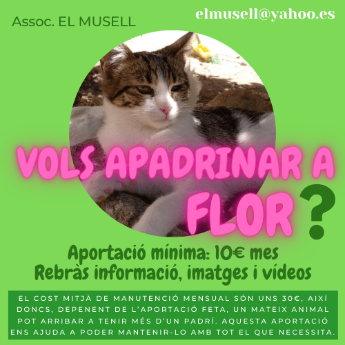 POTS APADRINAR FENT UNA APORTACIÓ MÍNIMA DE 10€ MENSUALS. Aquesta aportació ens ajuda a poder mantenir-lo amb tot el que necessita. Rebràs informació, fotografies i fins hi tot depenent de la seva condició d’acollida fer-li alguna visita.